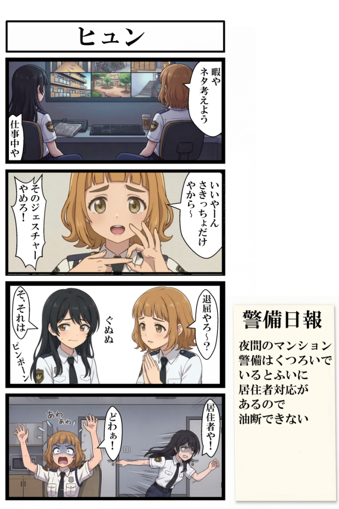 とあるマンションで夜間の施設警備員として働く女の子たちを描く、本格職業漫画(ウソ)です。
