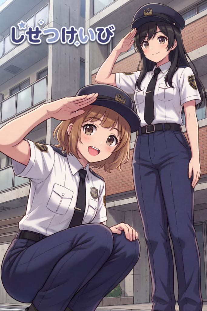 『しせつけいび』は、マンション警備の現場を舞台に、夜勤で働く女の子たちの日常をコミカルに描くオリジナル漫画です。第1話はシリーズの導入回として、モニター監視の暇さや居住者対応の慌ただしさ、施設警備ならではの小ネタを交えながら、まことえみの関係性がわかる内容になっています。