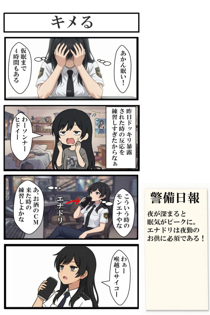 ・夜が深まると眠気がピークに達する。エナドリは夜勤のお供に必須!
